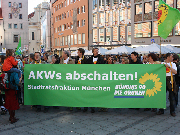 Siegfried Benker mit FreundInnen und StadträtInnen bei der Menschenkette gegen Atomkraft am 9. Oktober 2010 auf dem Marienplatz.
